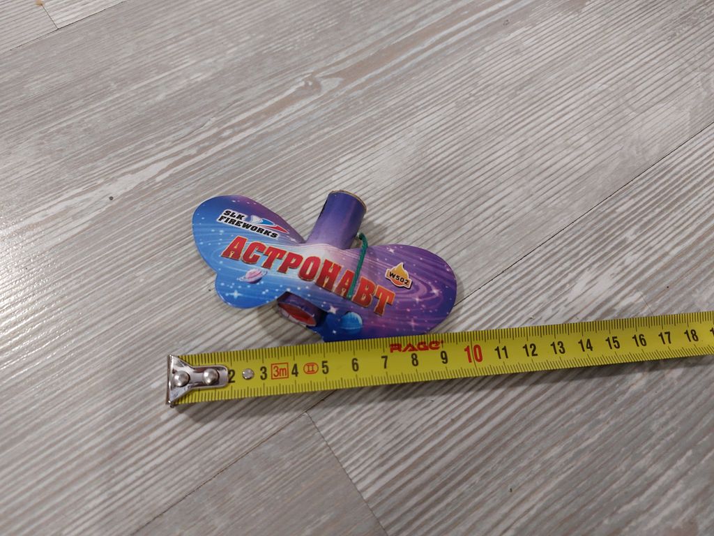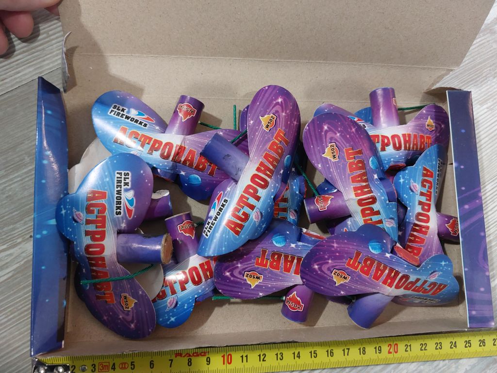 W502 АСТРОНАВТ 600 руб. Купить в 1 клик В корзину Название: АСТРОНАВТ .12шт Число залпов: 1 Эффекты: Раскручивается и взлетает до 15 м, светится и мерцает, разбрасывая цветные искры. Класс опасности: III кл. опасн. Название: АСТРОНАВТ .12шт Число залпов: 1 Эффекты: Раскручивается и взлетает до 15 м, светится и мерцает, разбрасывая цветные искры. Класс опасности: III кл. опасн.