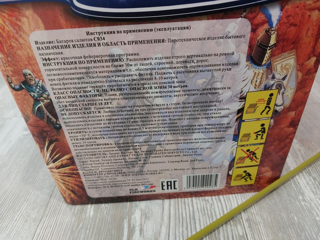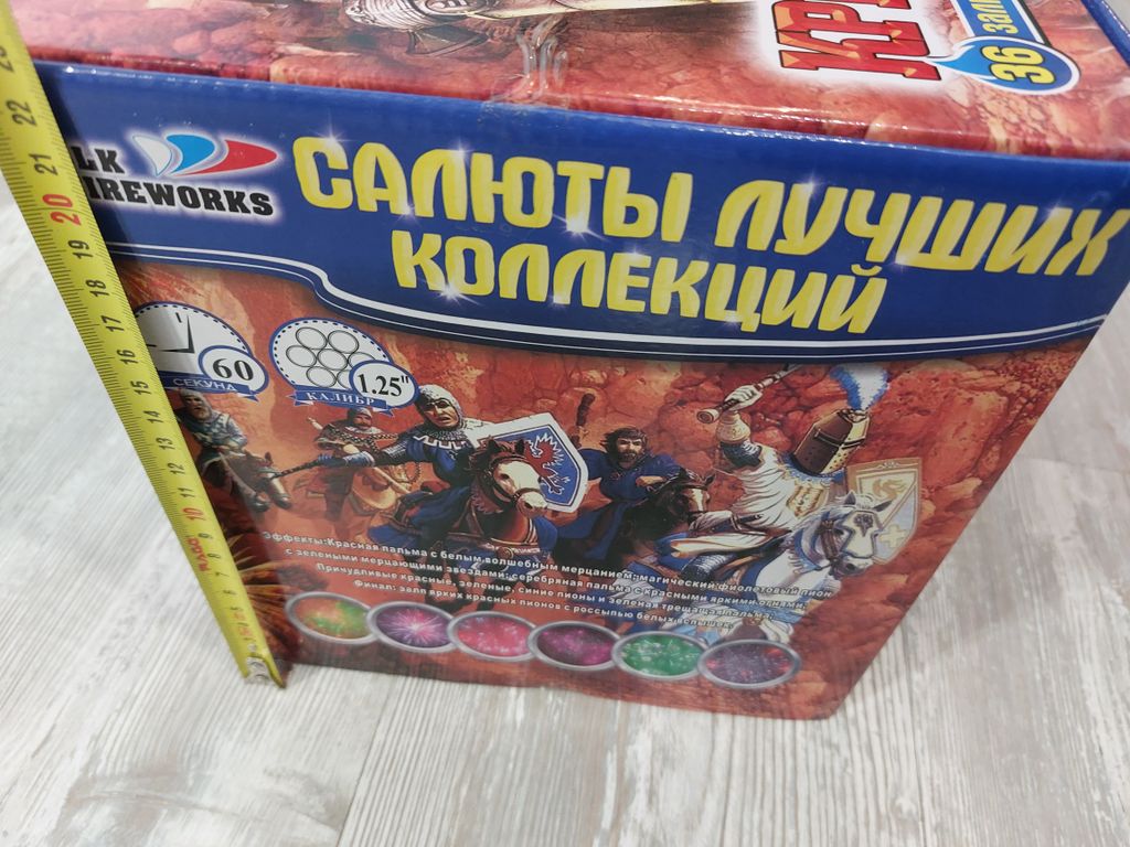 - Эффекты: -Красная пальма с белым волшебным мерцанием,магический фиолетовый пион с зелеными мерцающими звездами, серебряная пальма с красными яркими огнями. -Причудливые красные, зеленые, синие пионы и зеленая трещащая пальма; -Финал: залп ярких красных пионов с россыпью белых вспышек.