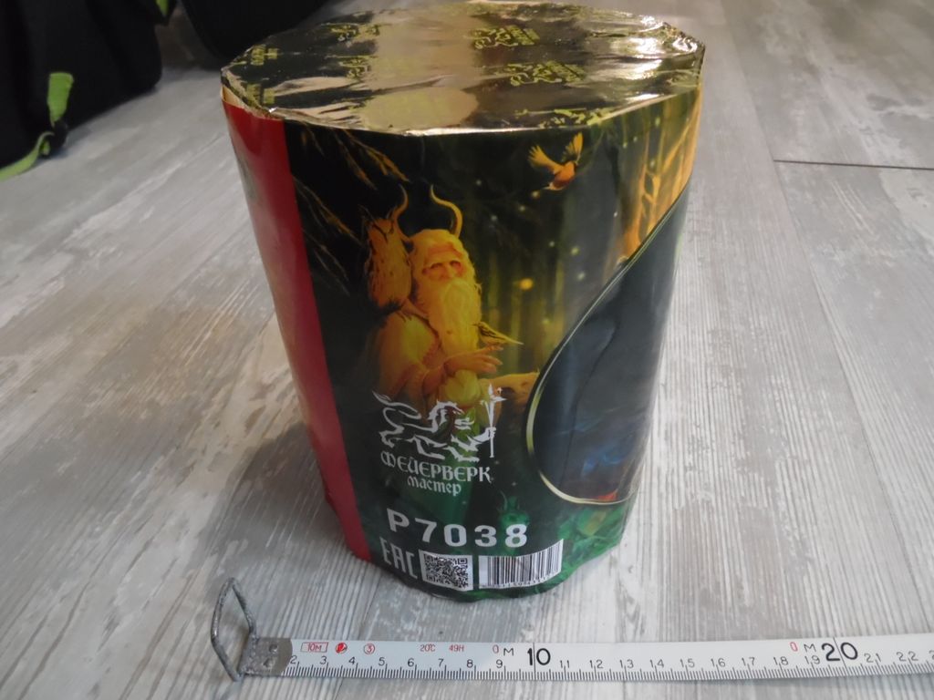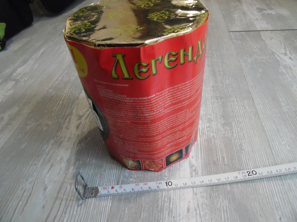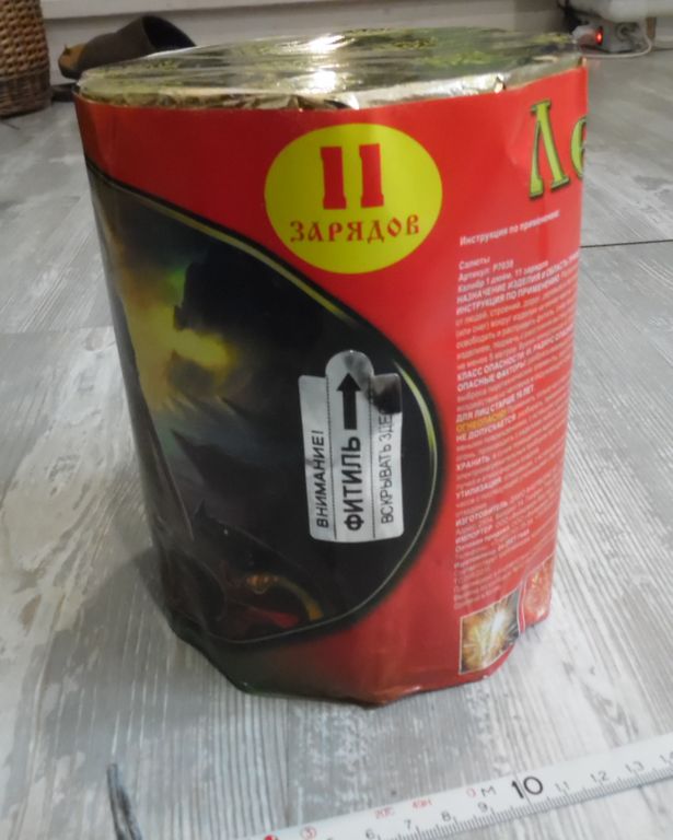 11 залпов 1" Красивая батарея, хоть и небольшая. Красные и зеленые звезды с мерцанием и треском (до 30 сек, до 20 м)